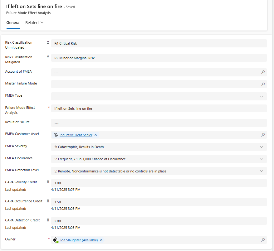 Failure Mode Effect Analysis Ledger